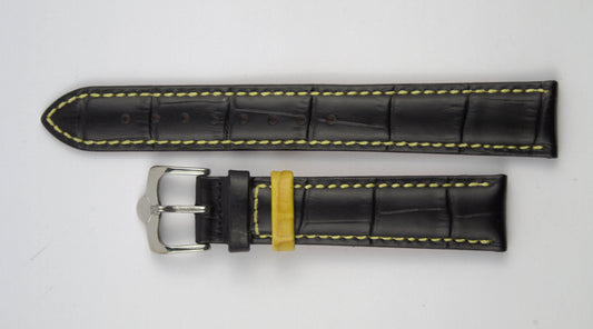 Savannah Sport (gepolstert, Krokodilprägung) - Schwarz mit gelber Naht
